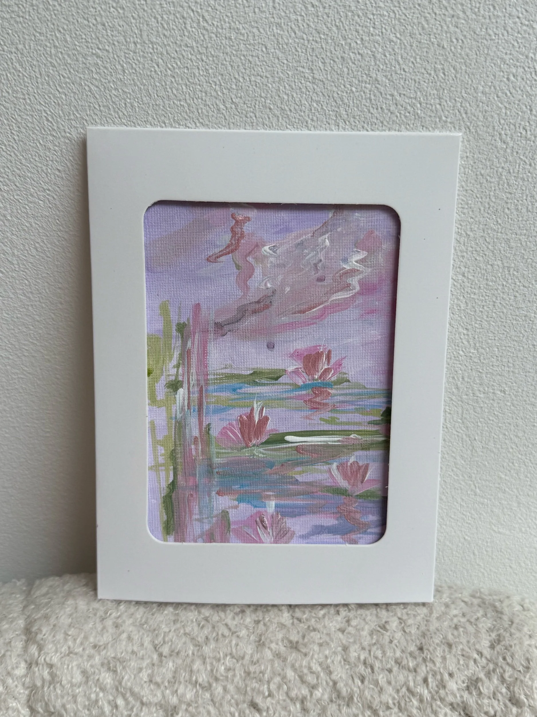 Each one is a hand-painted original painting, a dreamy study, framed in a white card mount.