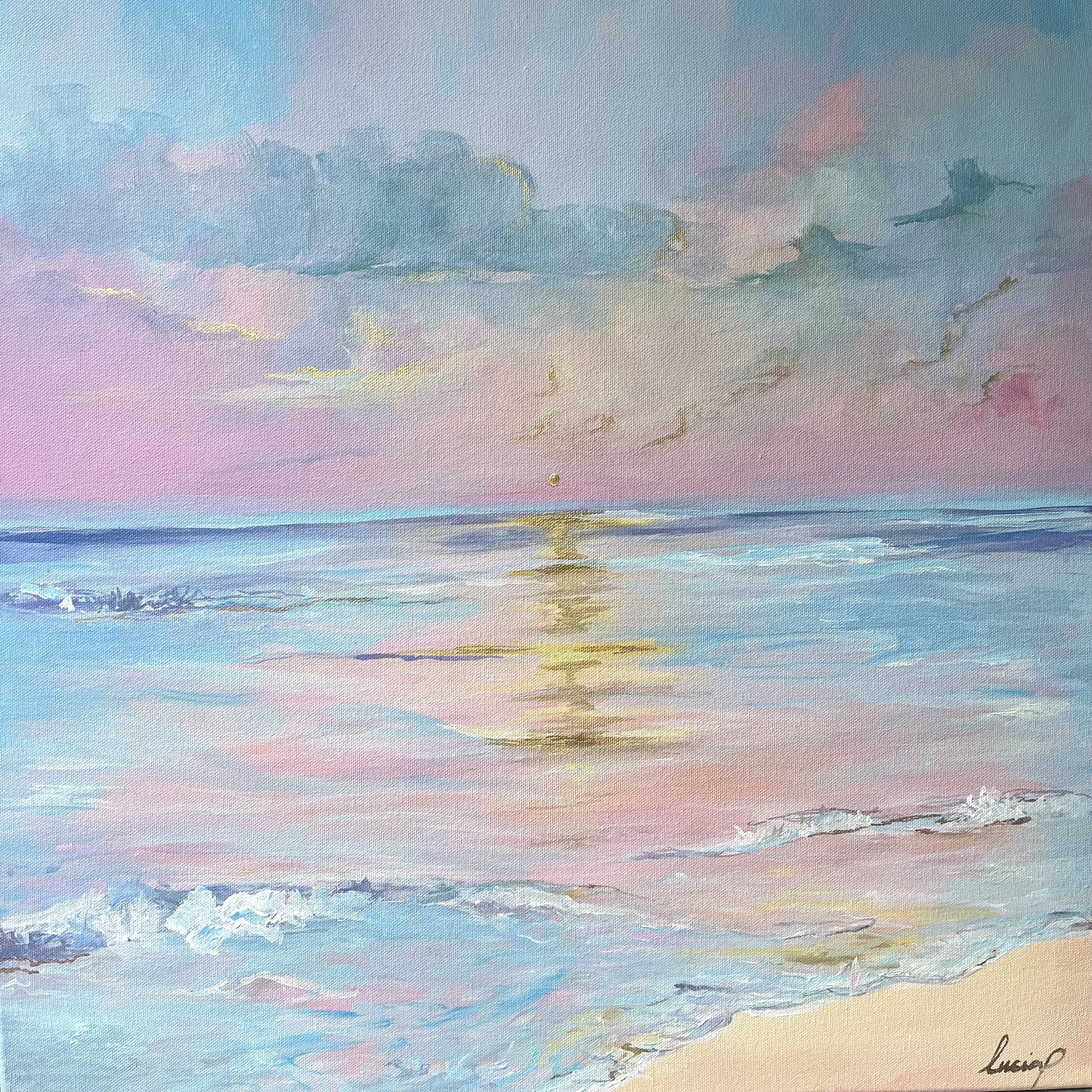 Lucia's inspiration for the sunset paintings is to transport the viewer to a moment to serenity and thoughtful thinking, where worries fade away as you focus on something that’s greater than us - the radiance of the sun, and all that remains is the present moment. Creating a space for positive self-reflection, the Artist invites the viewers to find a moment of serenity during the sometimes chaos of everyday life.