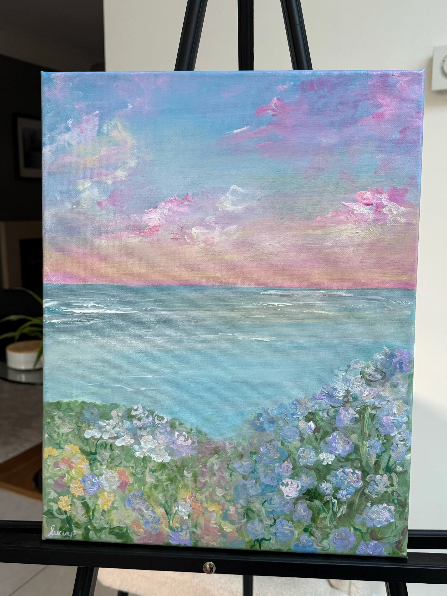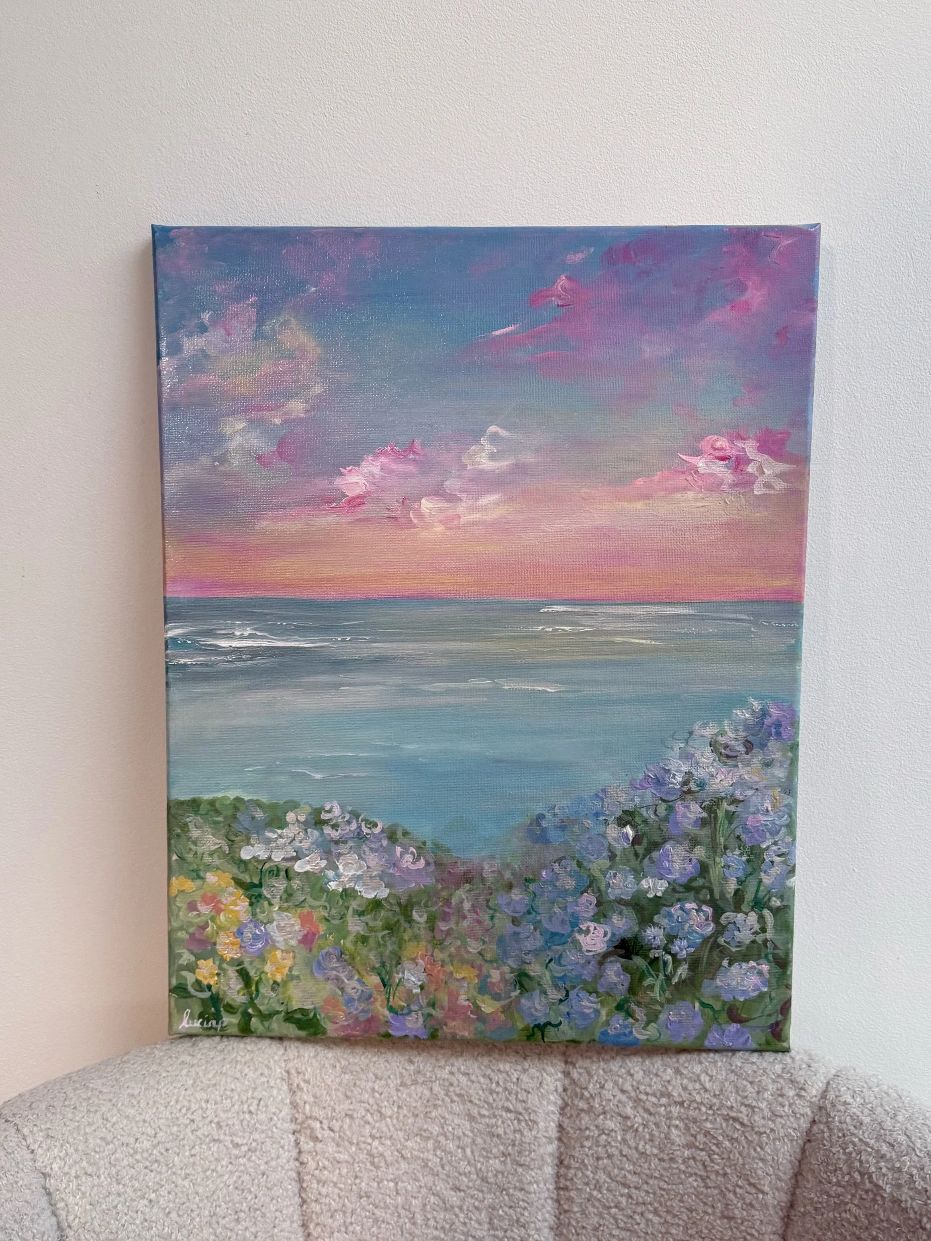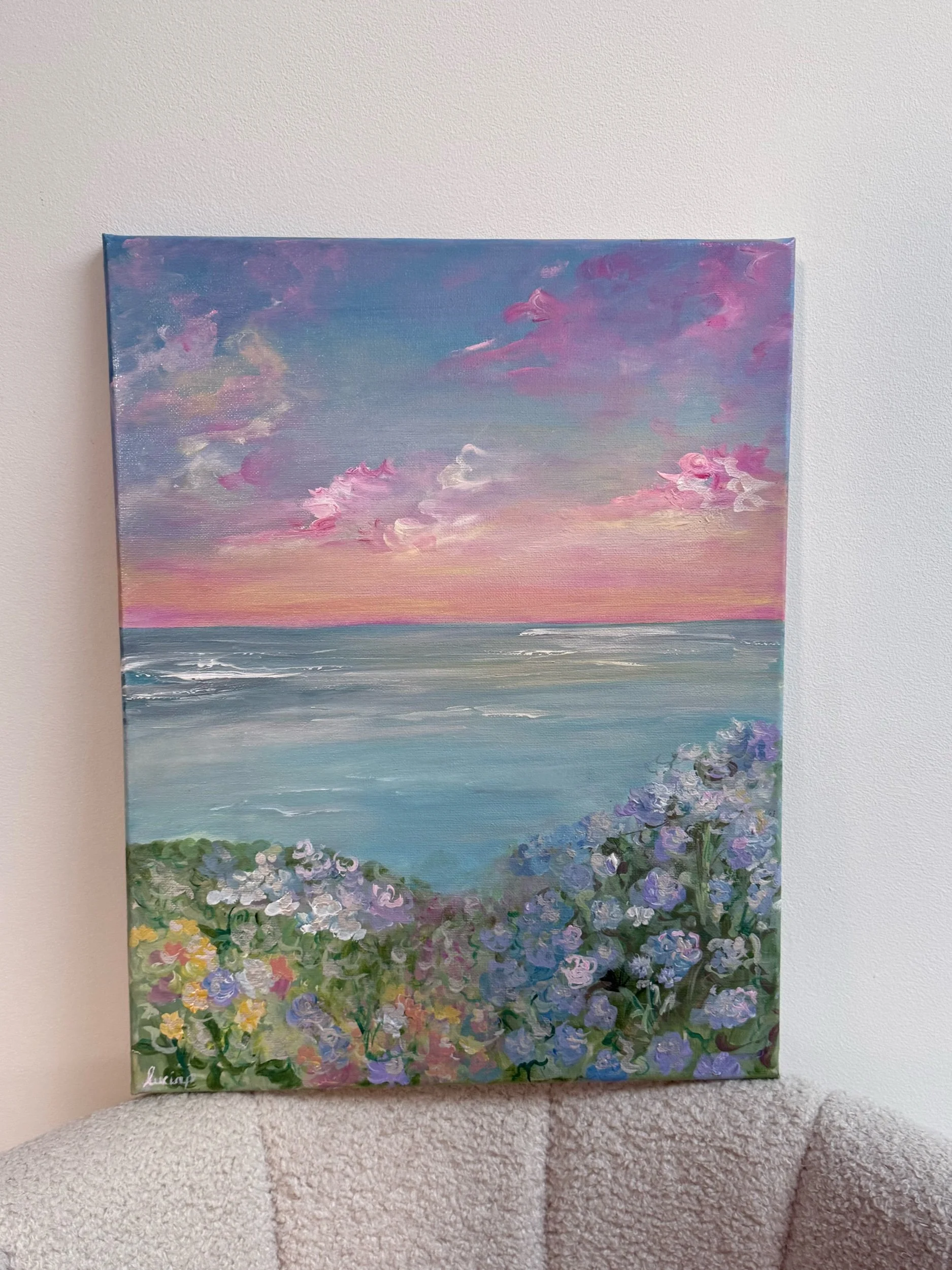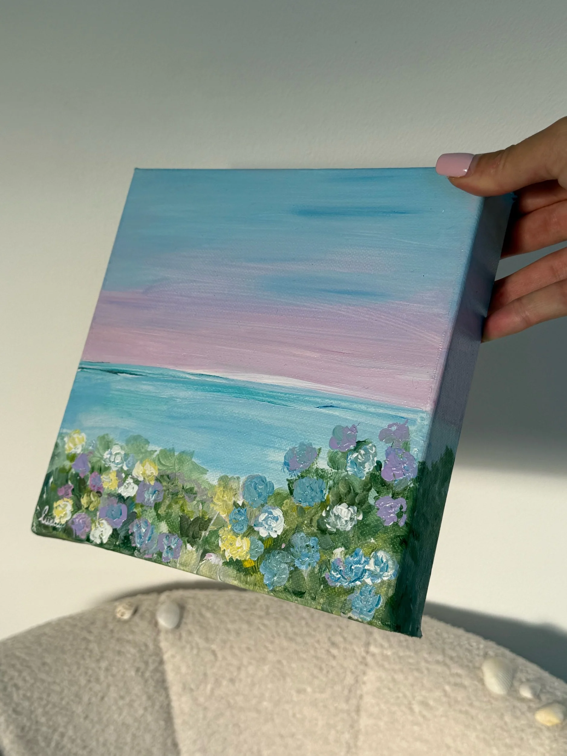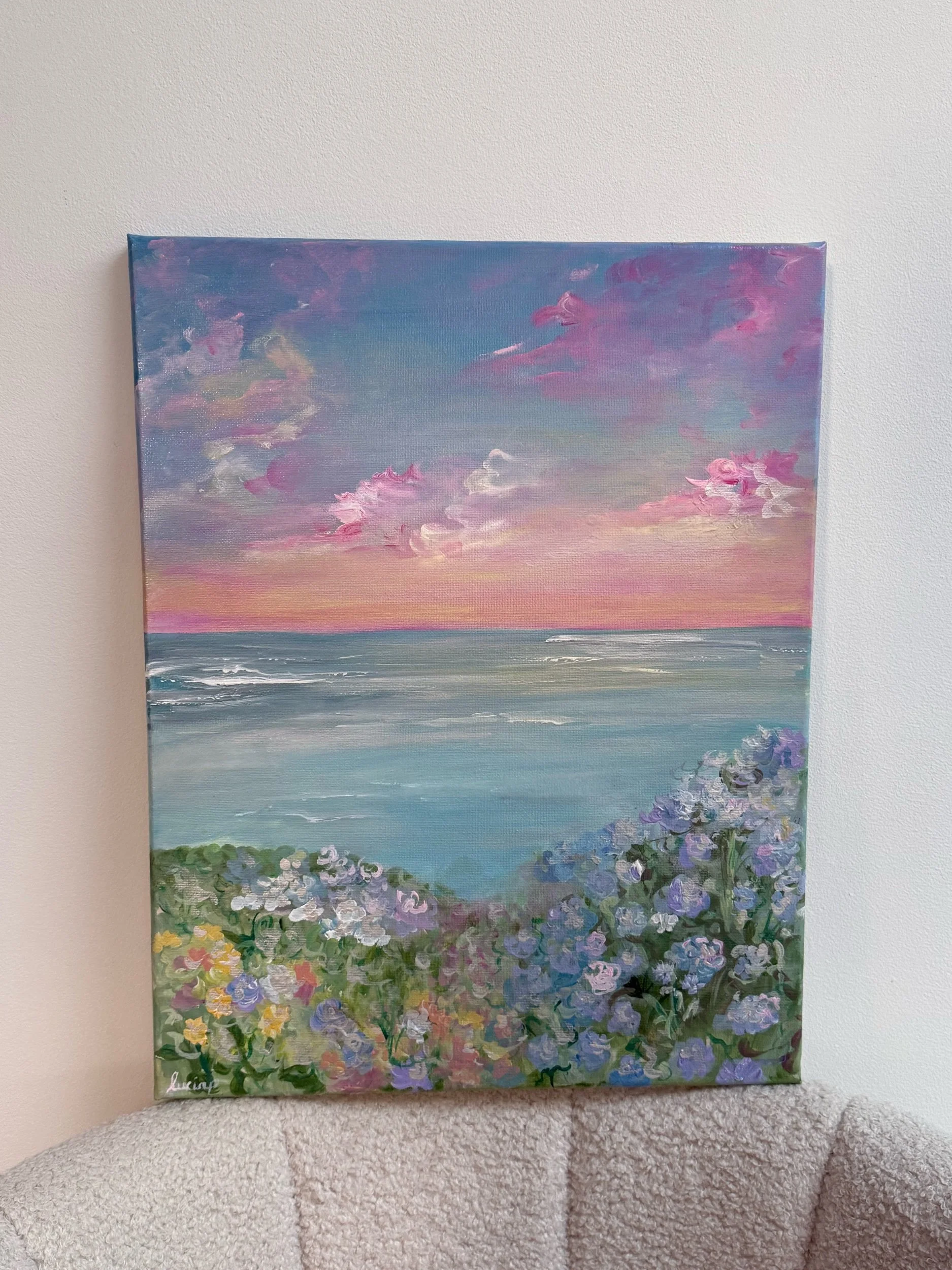 Inspired by The Summer I Turned Pretty and the dreamy world of Cousins Beach, The Summer I Painted is a romantic impressionist collection of coastal sunsets, turquoise seas, and blooming hydrangeas. Each original painting captures the magic of long summer days, golden hour light, and nostalgic seaside memories.