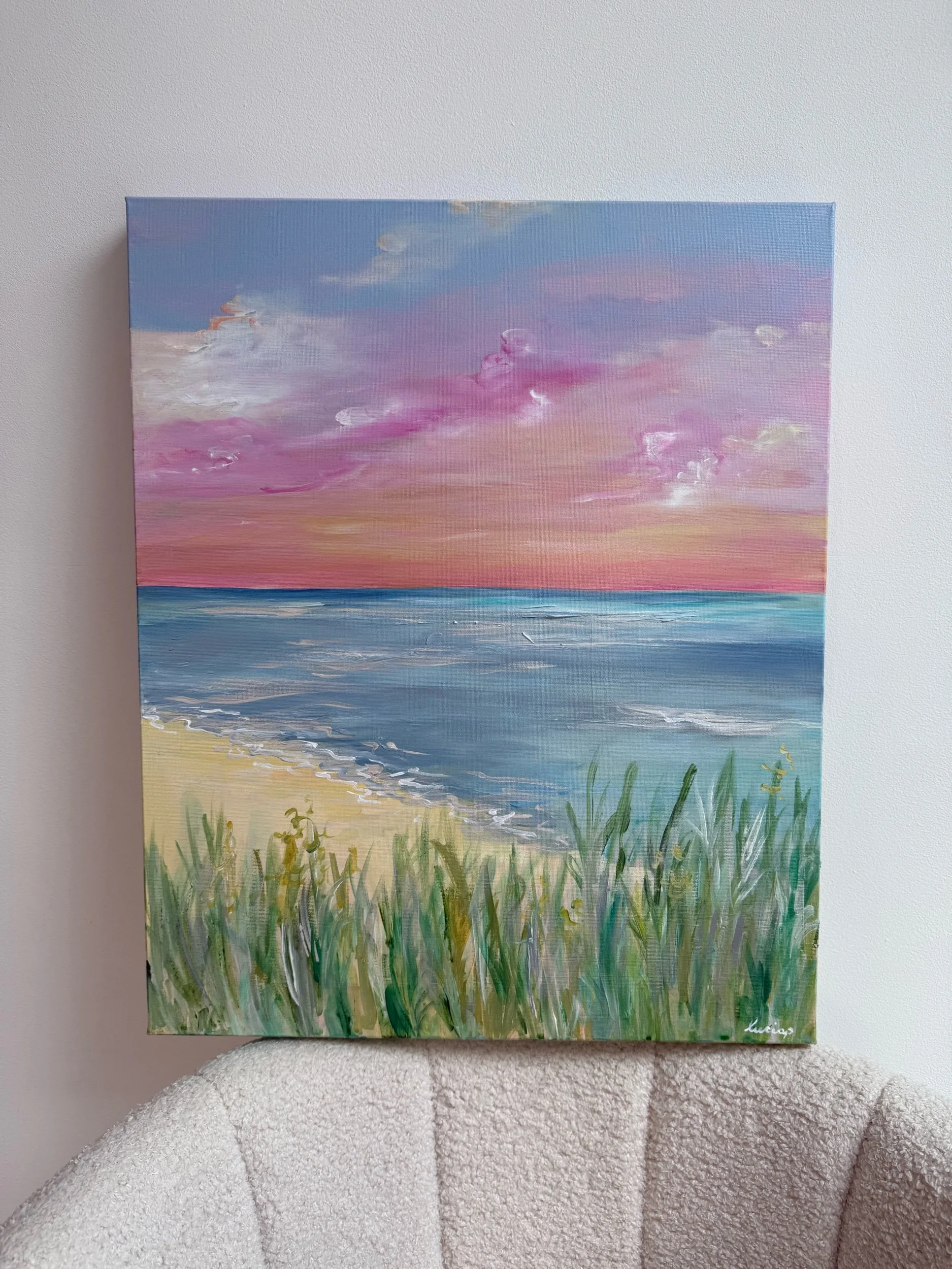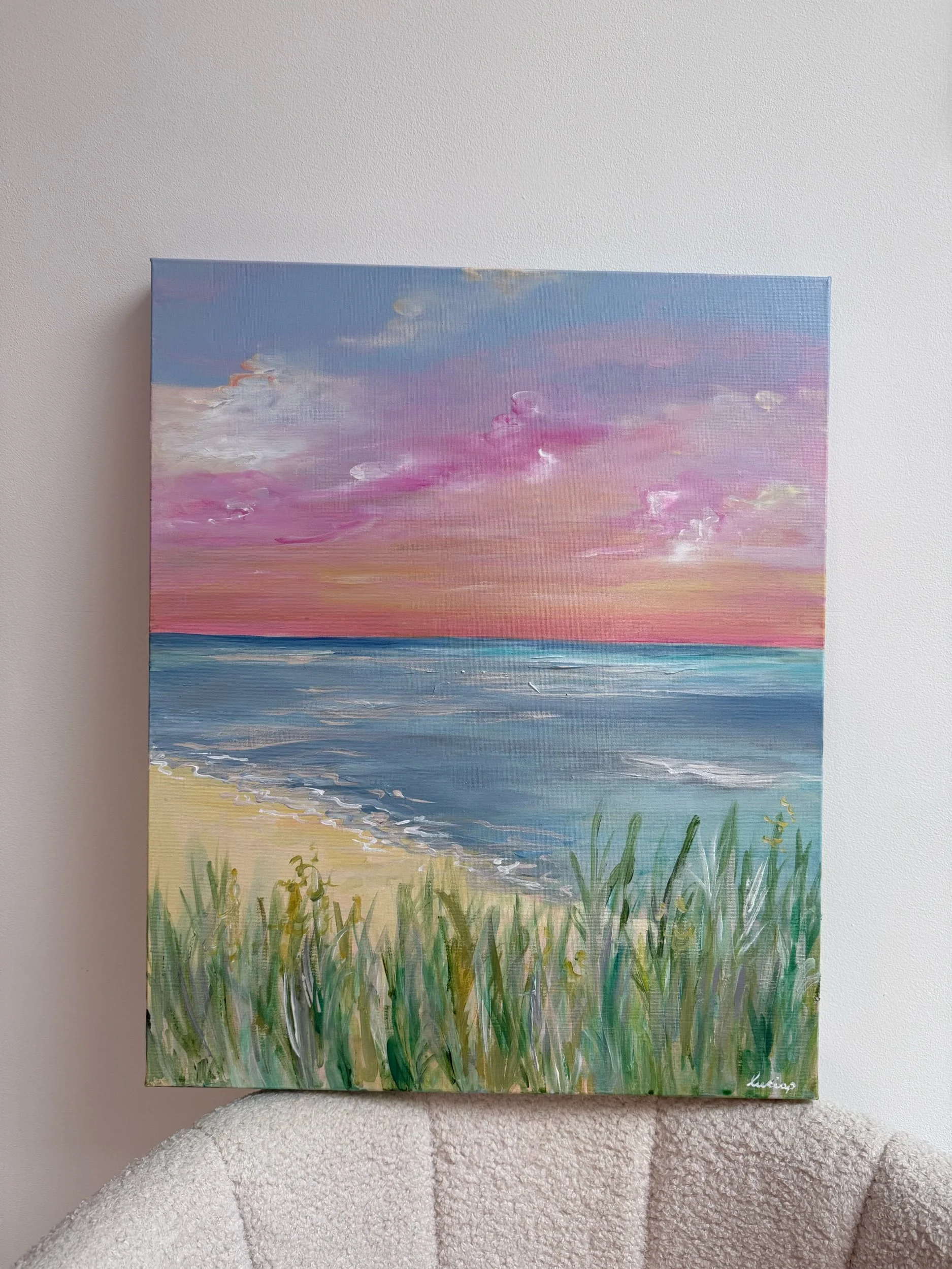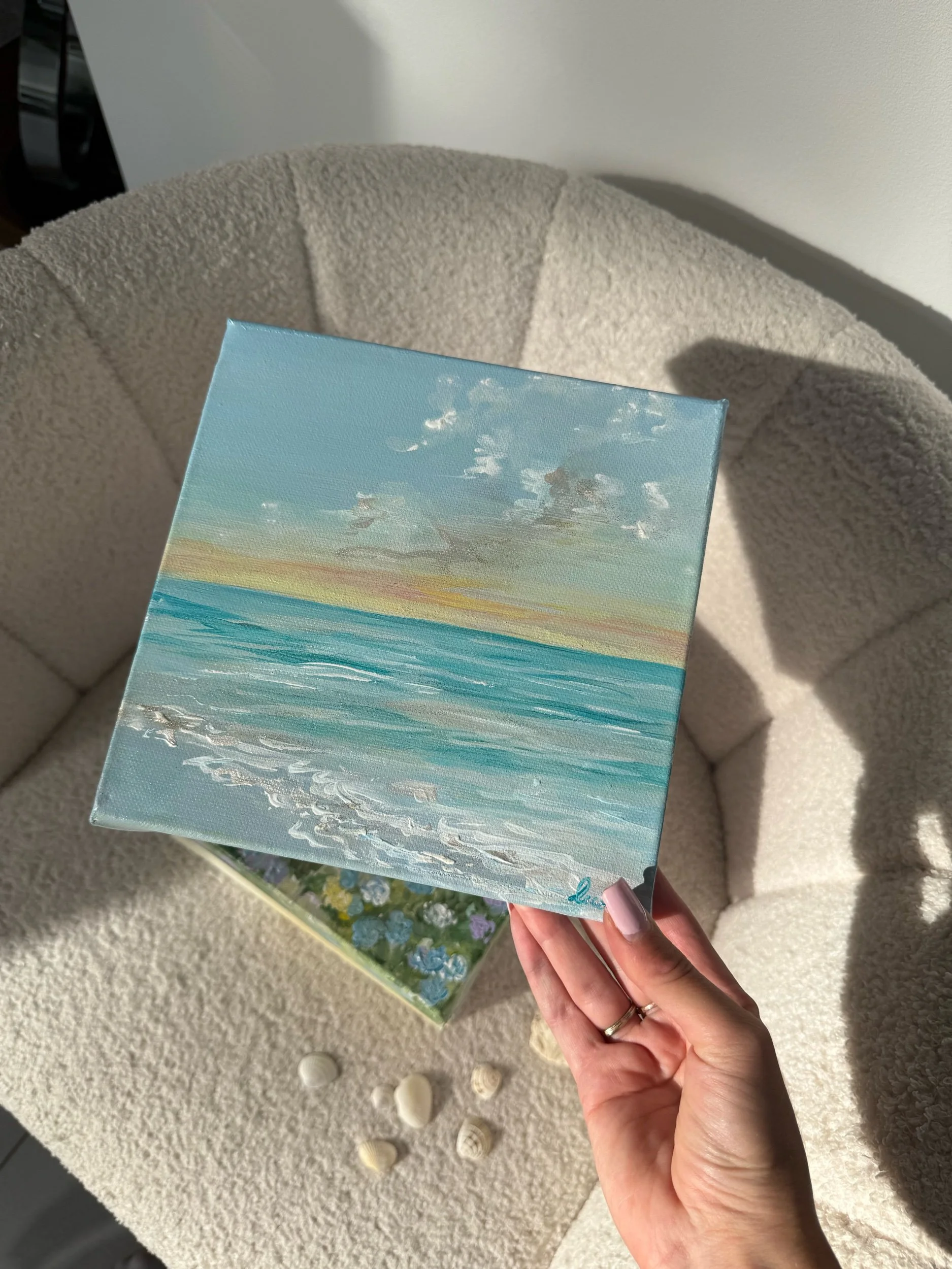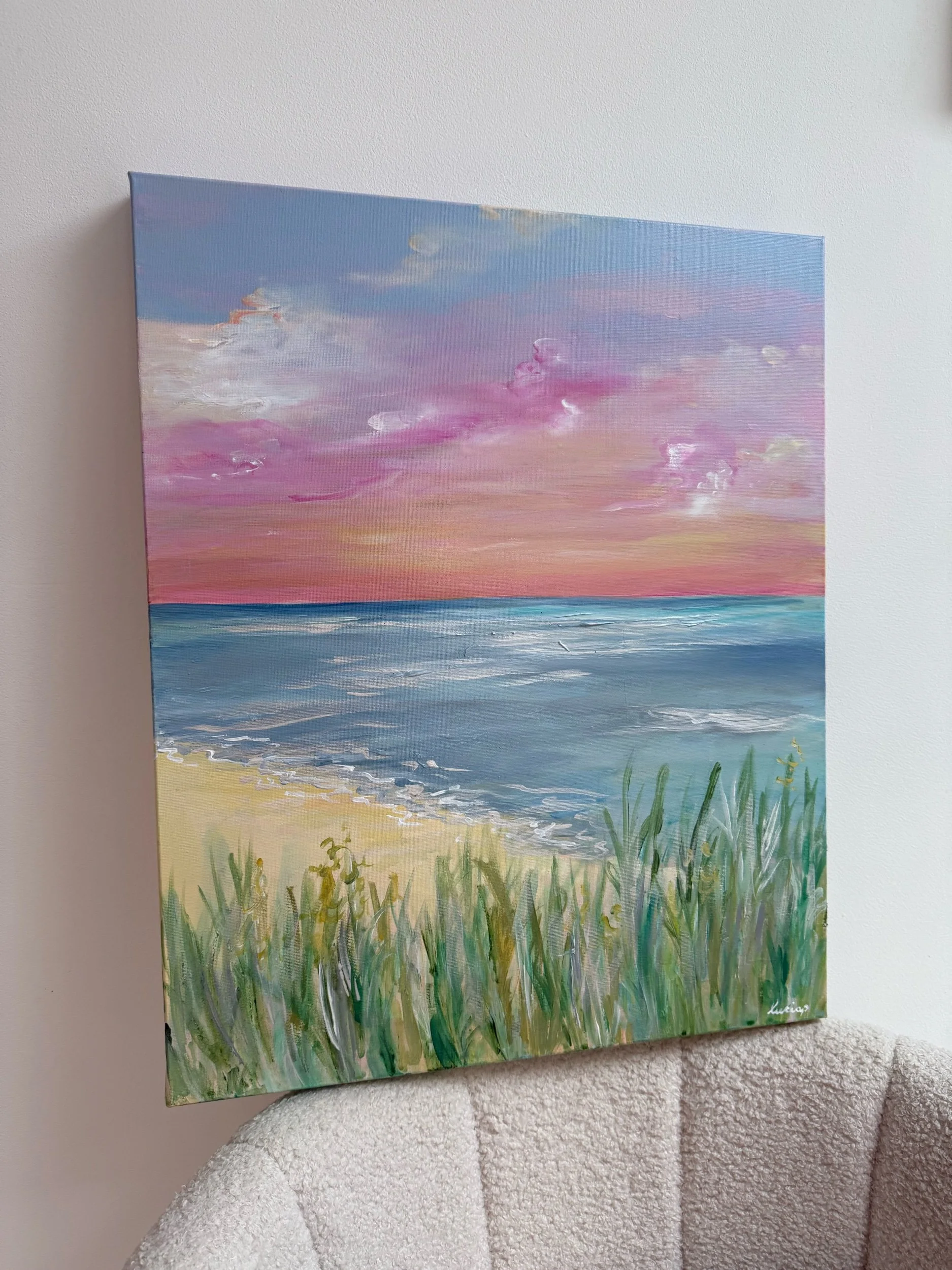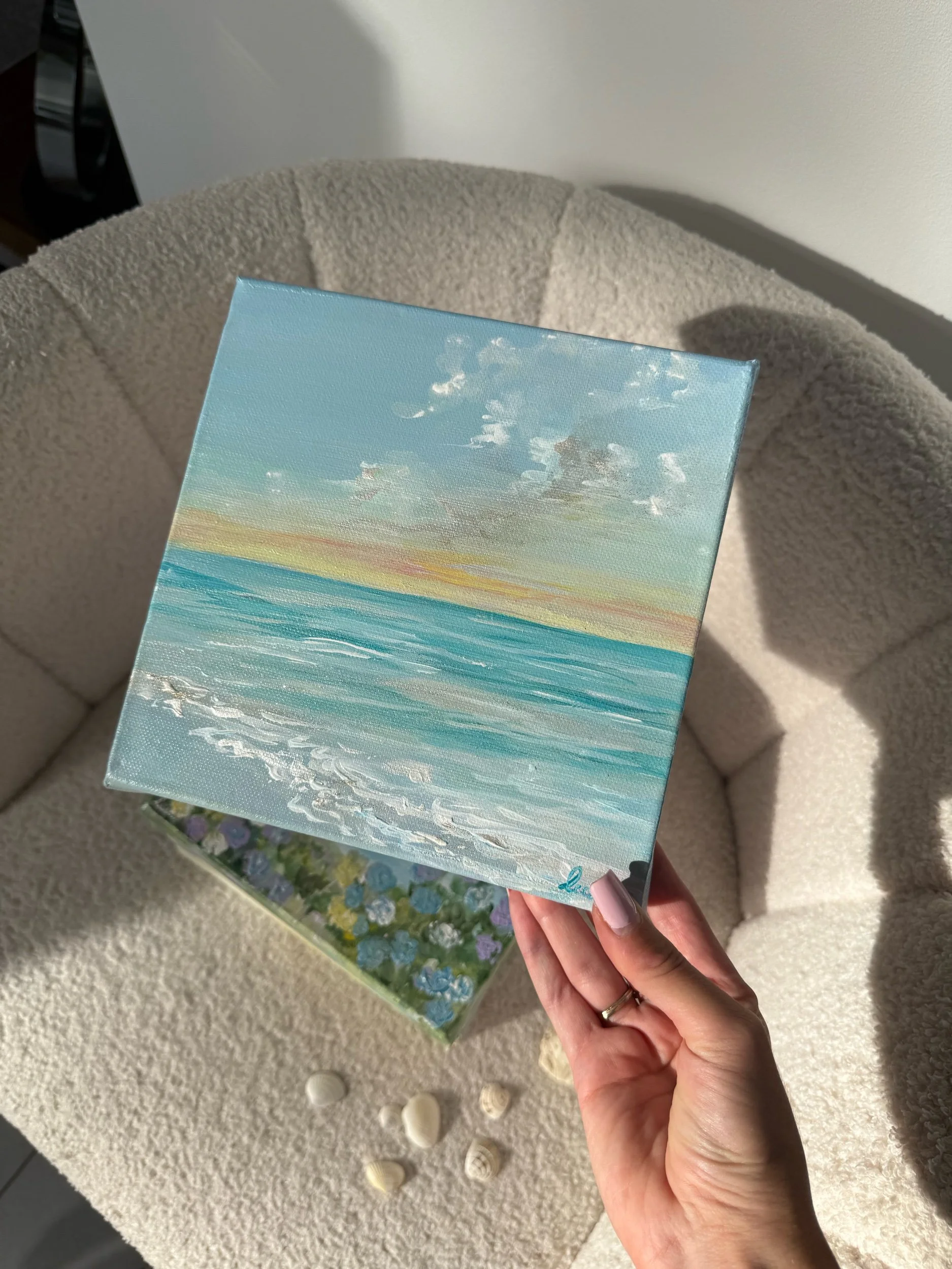 These artworks are a nostalgic love letter to summer, bringing the feeling of summer into your home all year round. Perfect for collectors of original coastal art, beach wall decor, and romantic seascape paintings, this collection blends pastel tones with vibrant seascapes to create joy, serenity, and timeless beauty.